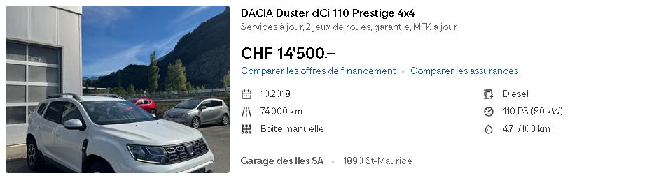 Véhicules d'occasion Annonces sur Autoscout24 Voir toutes les annonces du Garage des Iles Toyota Prius 1.8 VVT-i HSD Sol Premium Dacia Duster dCI 110 Prestige 4x4 Sous-menu Garage des Iles Véhicules neufs Véhicules d'occasion Services Contact